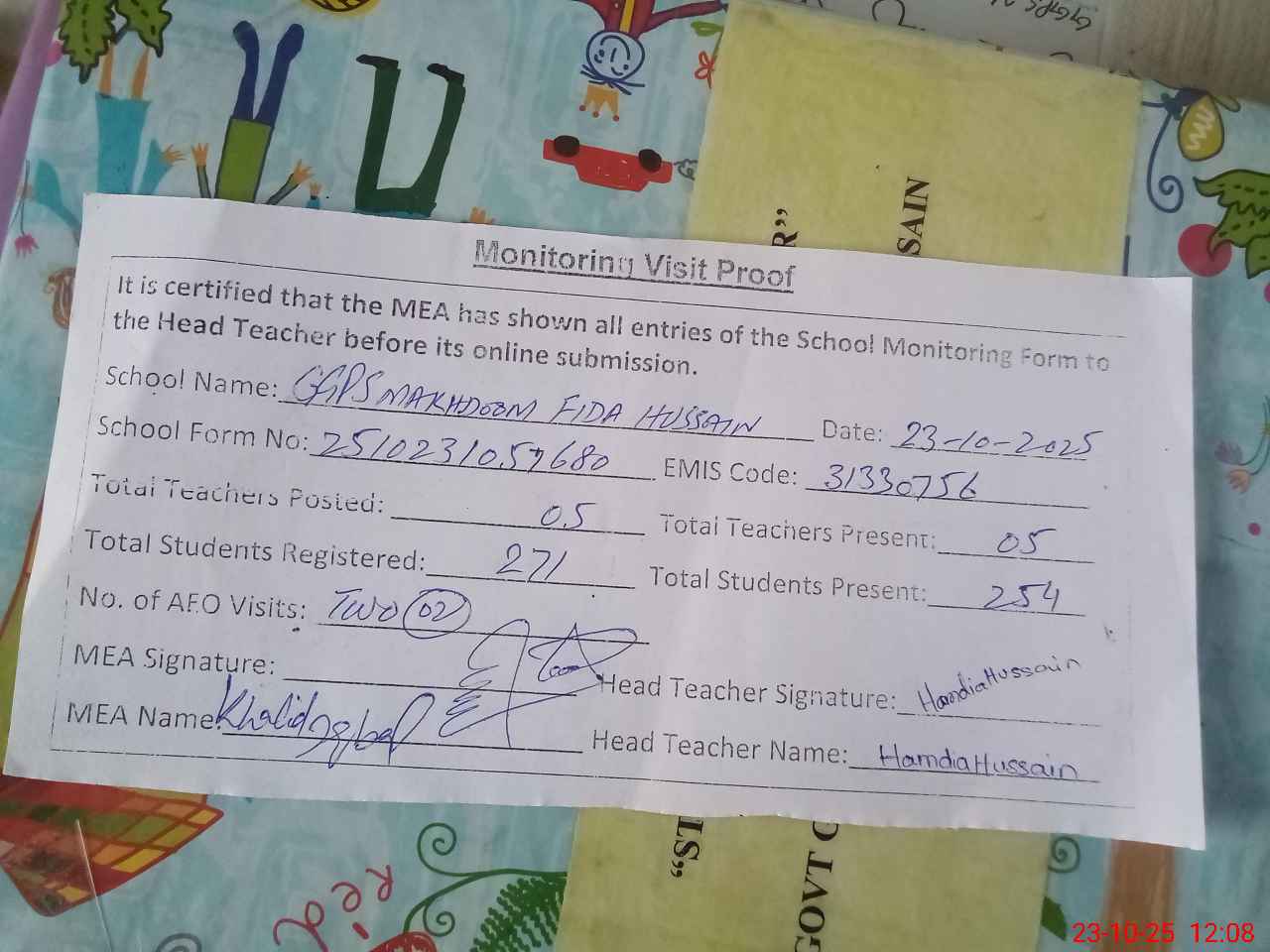 | EMIS Code: 31330756 | Name of School: GGPS MAKHDOOM FIDA HUSSAIN | |||