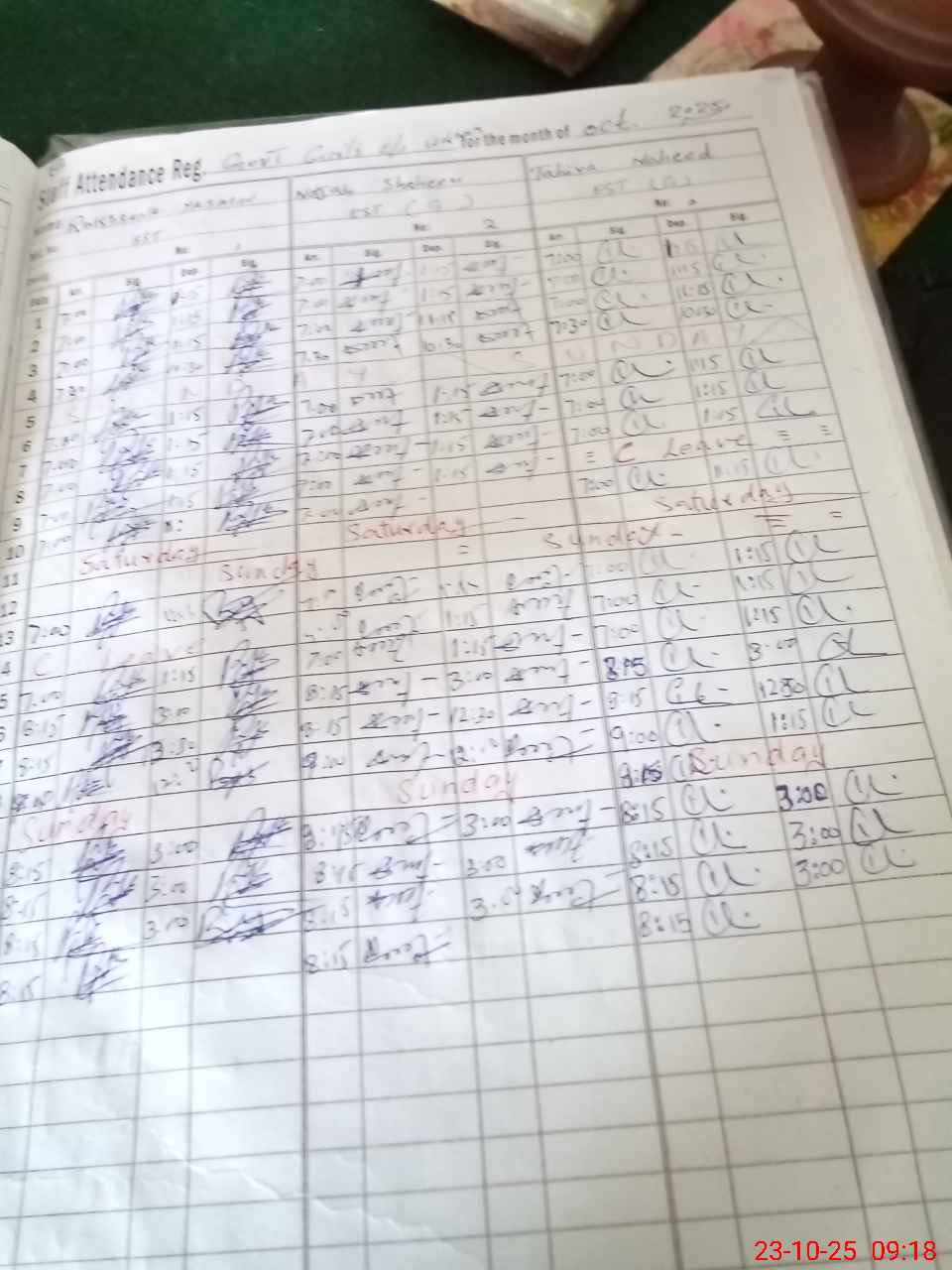 | 37**** | Fa**** Bi**** | EST | Regular | 0 | 0 | 0 | 0 | 0 | 0 | 0 | 0 | 0 | Absent (Un-Authorized) |