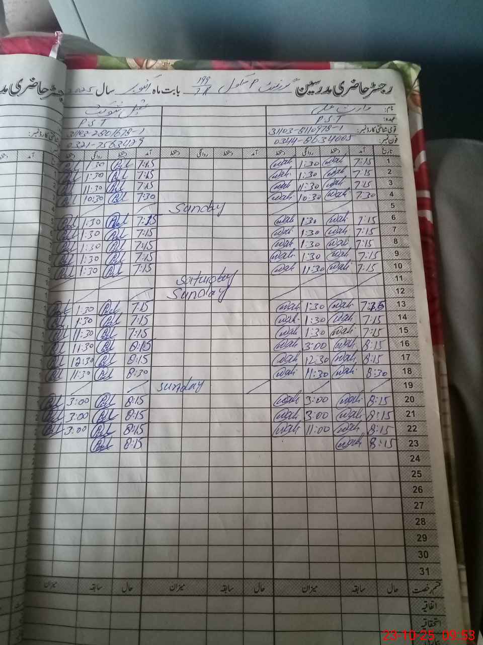| Name: Wa**** Al**** Designation: (School Headmaster's/Headmistress's) PST Phone/Cell Number: 03**** |