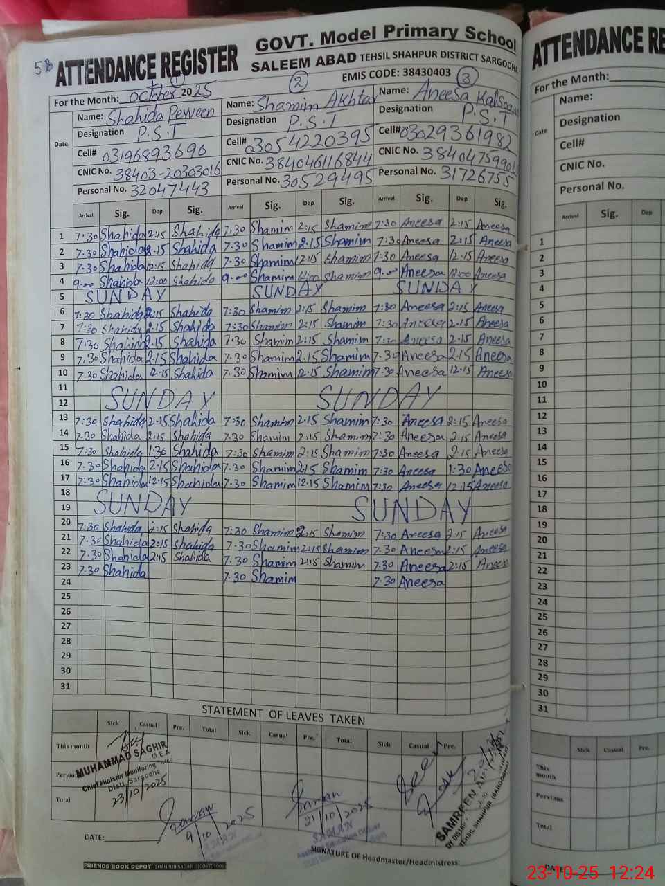 | Name: SH**** PA**** Designation: (School Headmaster's/Headmistress's) PST Phone/Cell Number: 03**** |