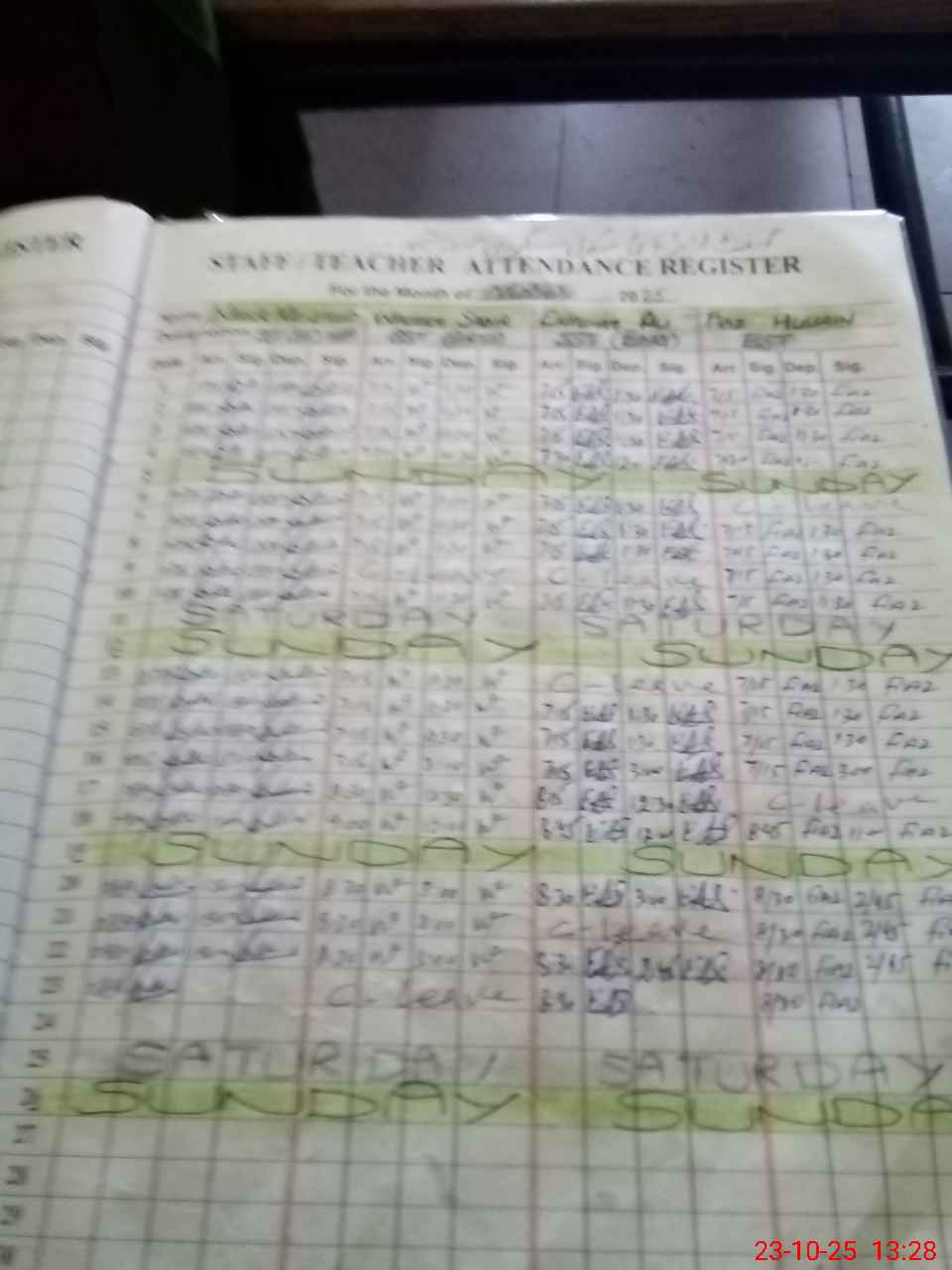 | CNIC | Full Name | Designation | R/C | Absence During Last Calender Month |