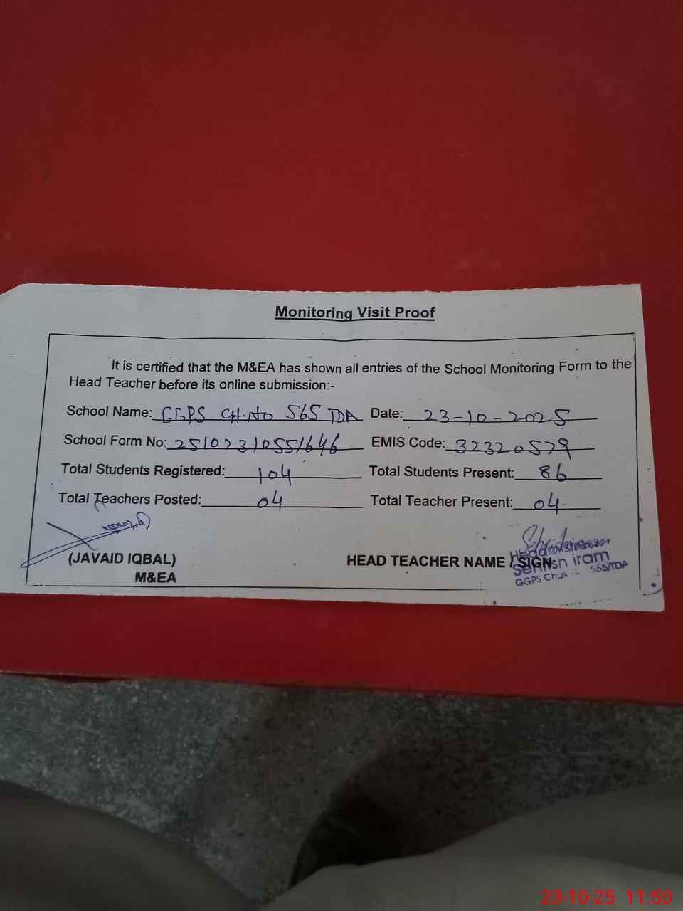 | EMIS Code: 32320579 | Name of School: GGPS CHAK NO. 565/TDA | |||