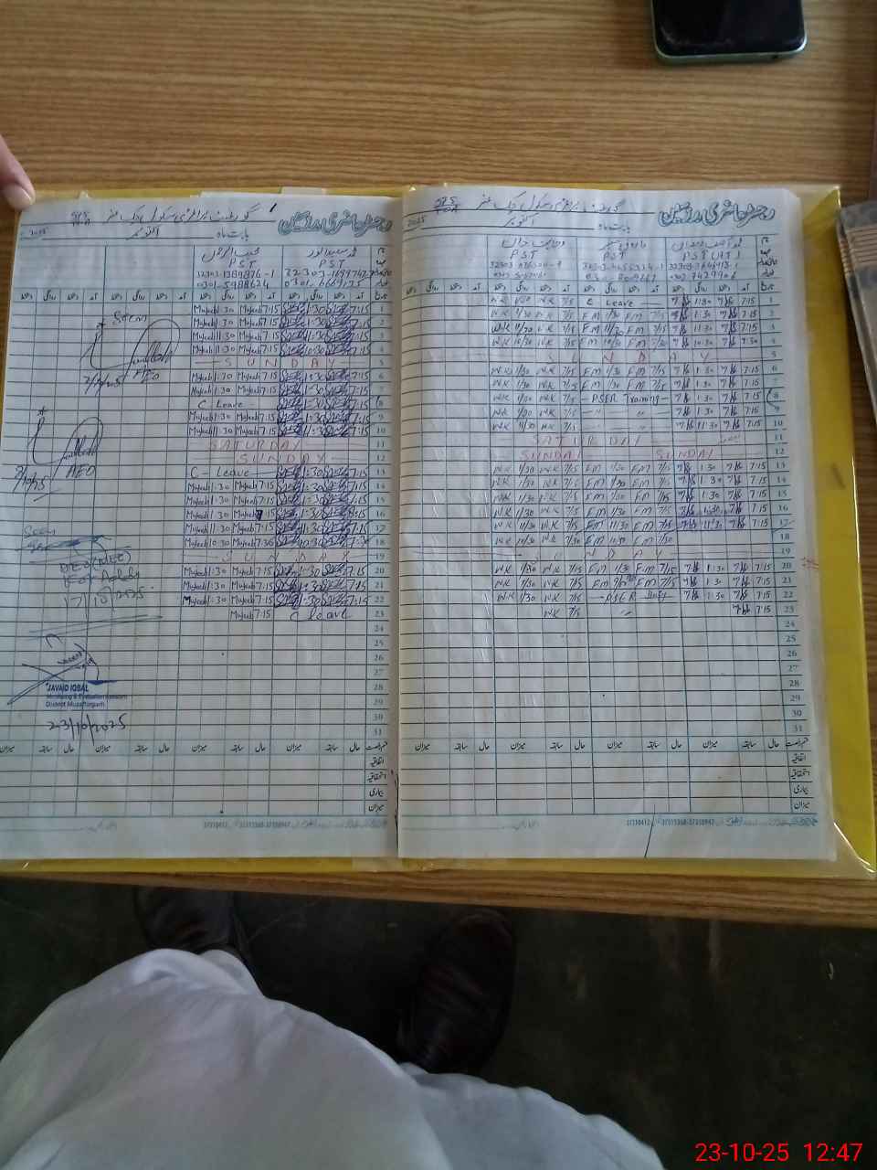 | CNIC | Full Name | Designation | R/C | Absence During Last Calender Month |