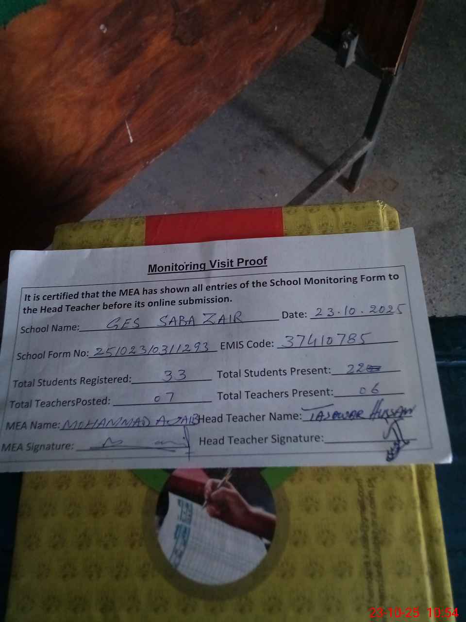 | EMIS Code: 37410785 | Name of School: GES SABA ZAIR | |||