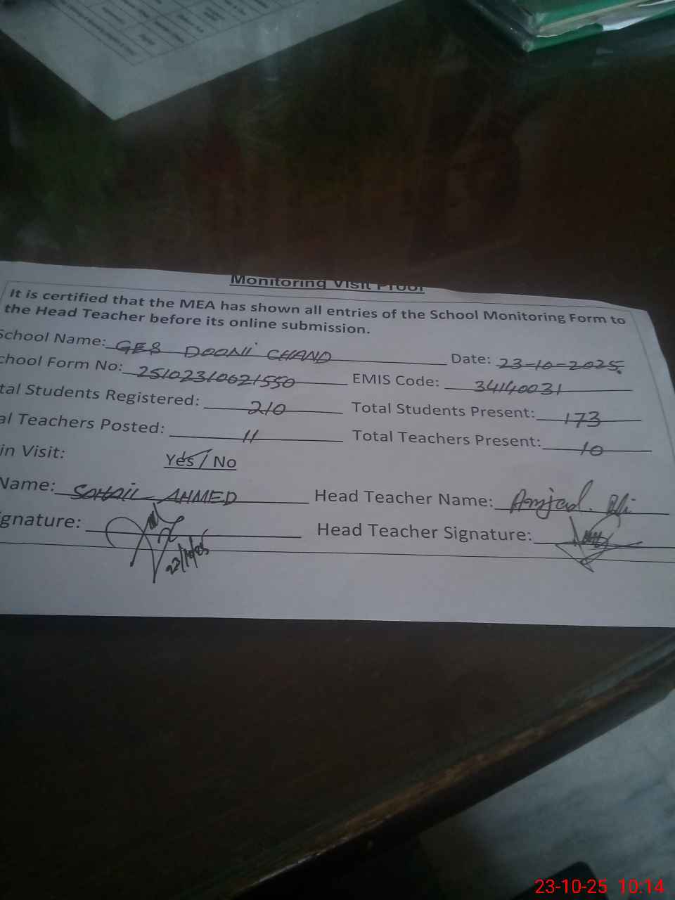 | EMIS Code: 34140031 | Name of School: GES CHAK DOONI CHAND | |||