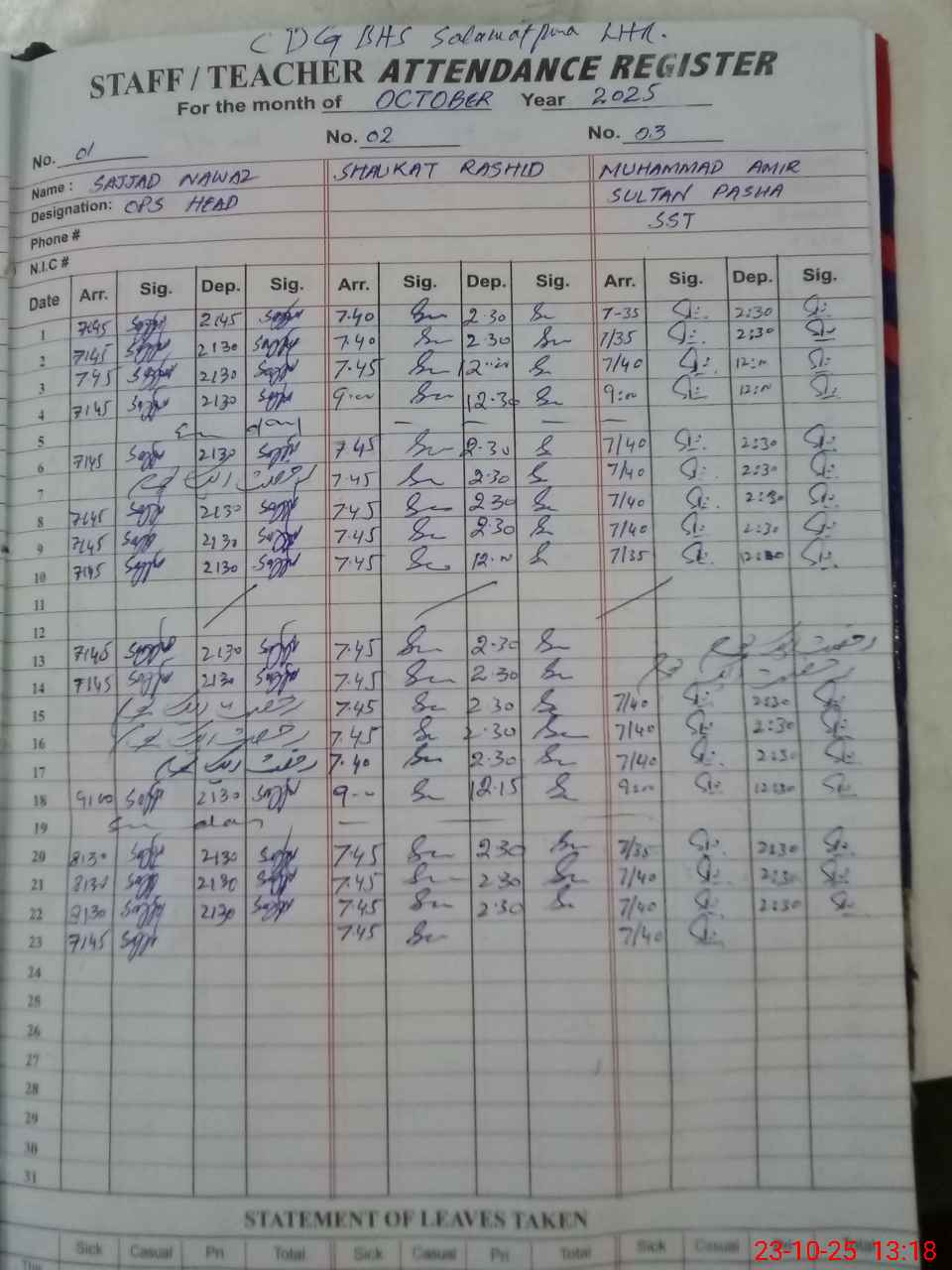 | CNIC | Full Name | Designation | R/C | Absence during last cal. month |