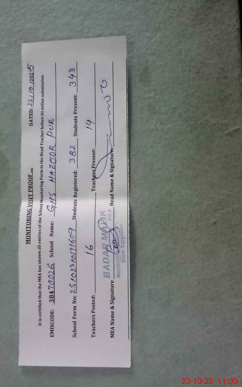 | EMIS Code: 38470026 | Name of School: GHS HAZOOR PUR | |||
