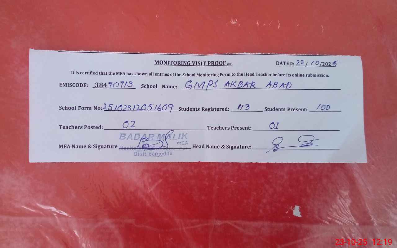 | EMIS Code: 38470713 | Name of School: GMPS AKBAR ABAD | |||