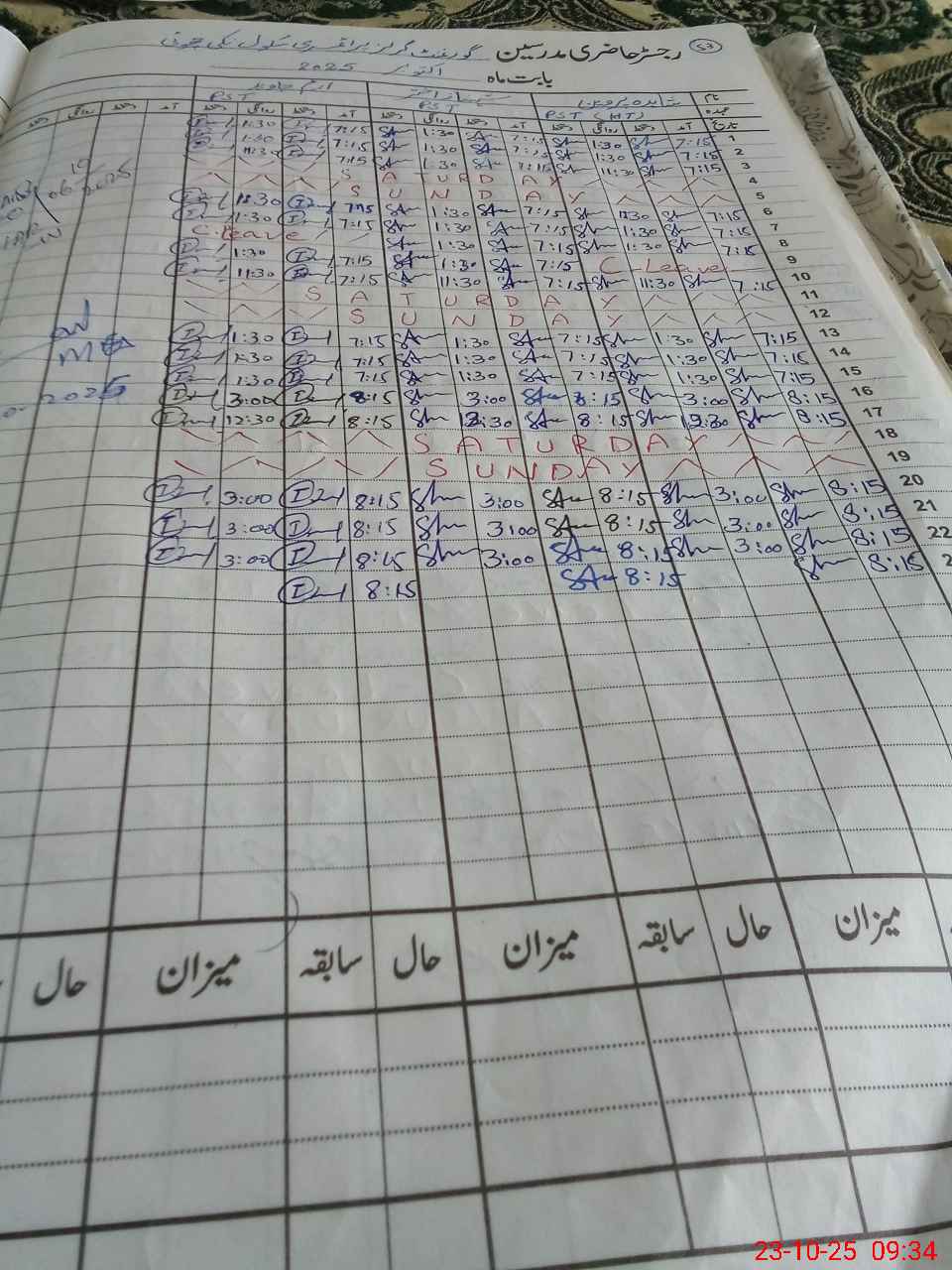 | CNIC | Full Name | Designation | R/C | Absence During Last Calender Month |