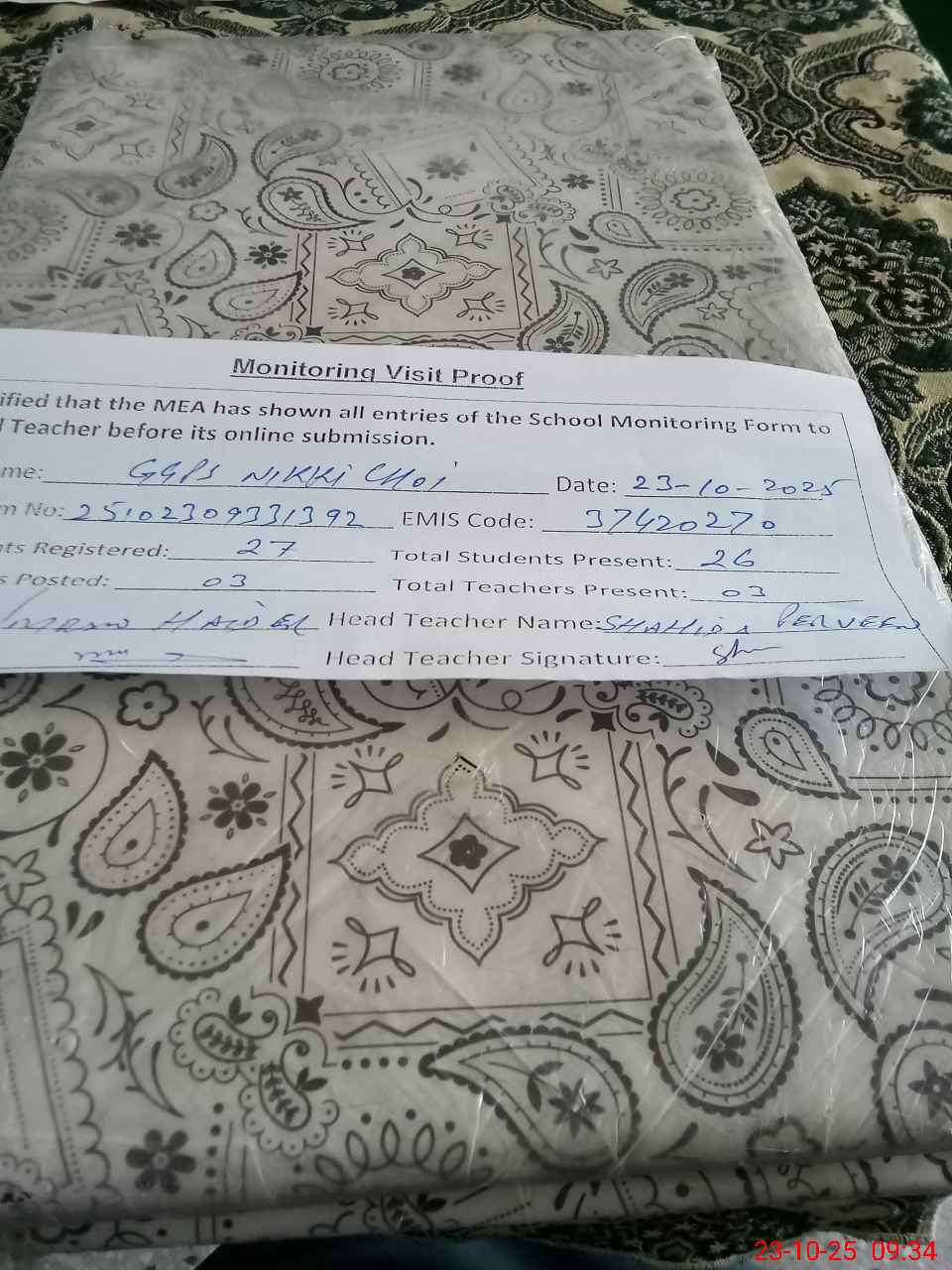 | Attendance Register | Head Teacher | MEA with School | Visit Proof |
