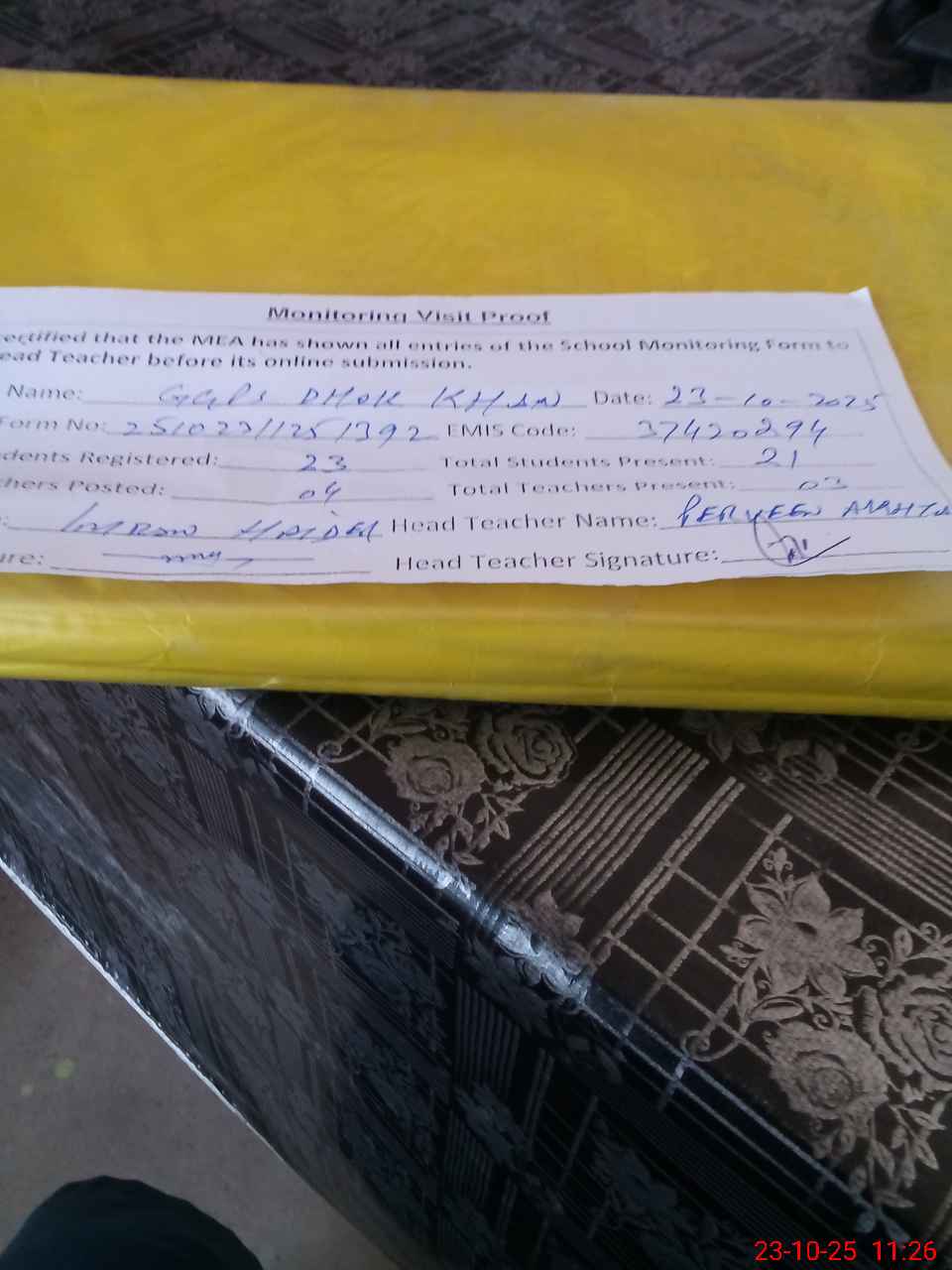 | EMIS Code: 37420294 | Name of School: GGPS DHOK KHAN | |||