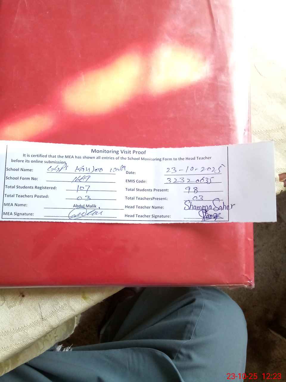 | EMIS Code: 32320635 | Name of School: GGPS KANJU WALA | |||