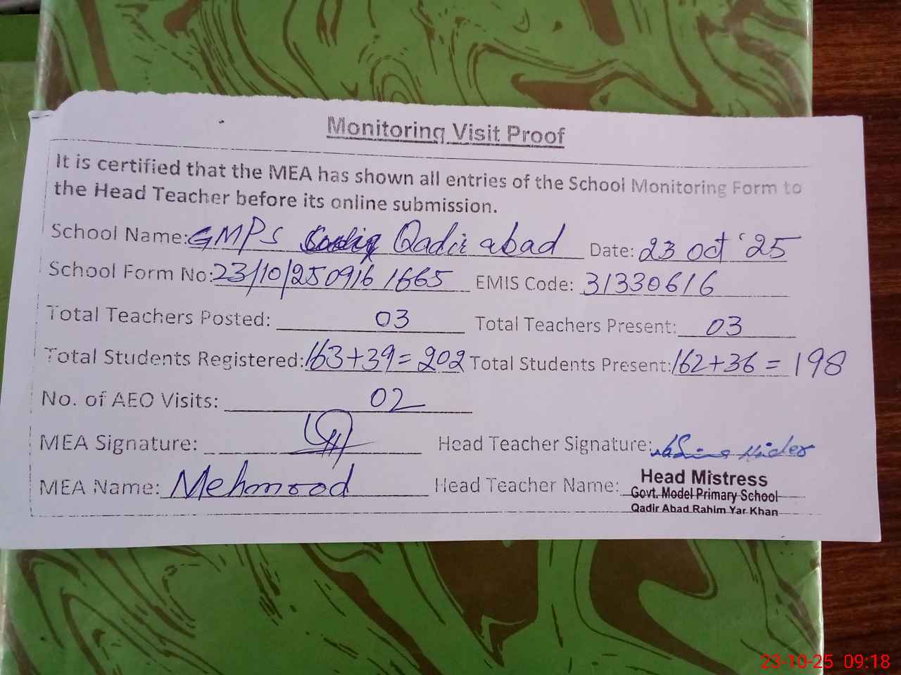 | EMIS Code: 31330616 | Name of School: GMPS QADIR ABAD BASTI | |||
