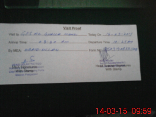 | Attendance Register | Head Teacher | MEA with School | Visit Proof |