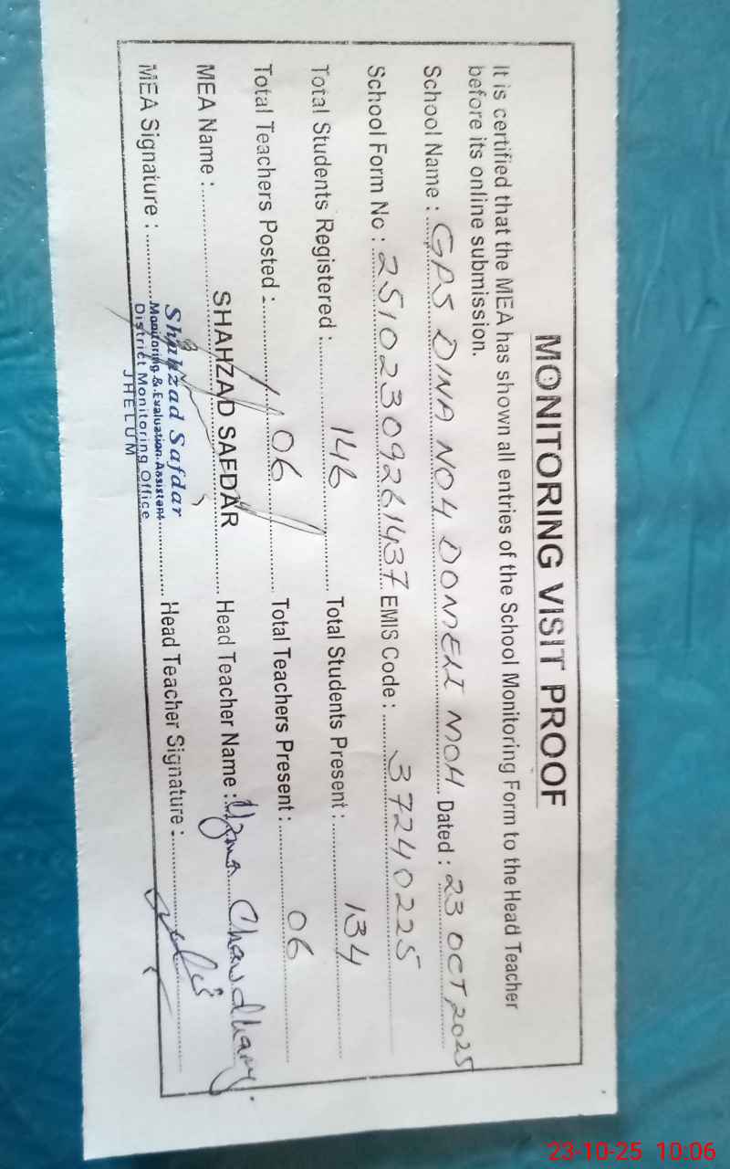 | EMIS Code: 37240225 | Name of School: GPS DINA NO. 4 DOMELI MOHALLHA | |||