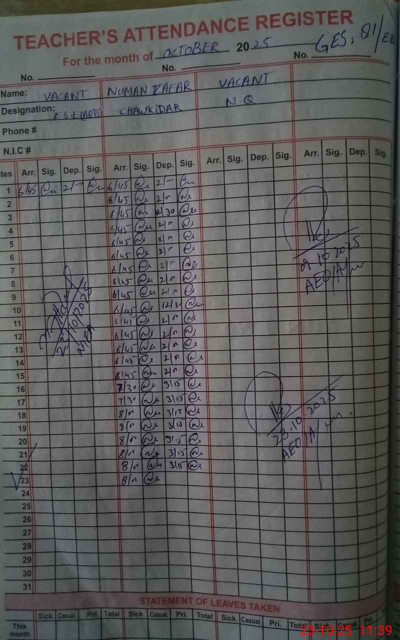 | Attendance Register | Head Teacher | MEA with School | Visit Proof |