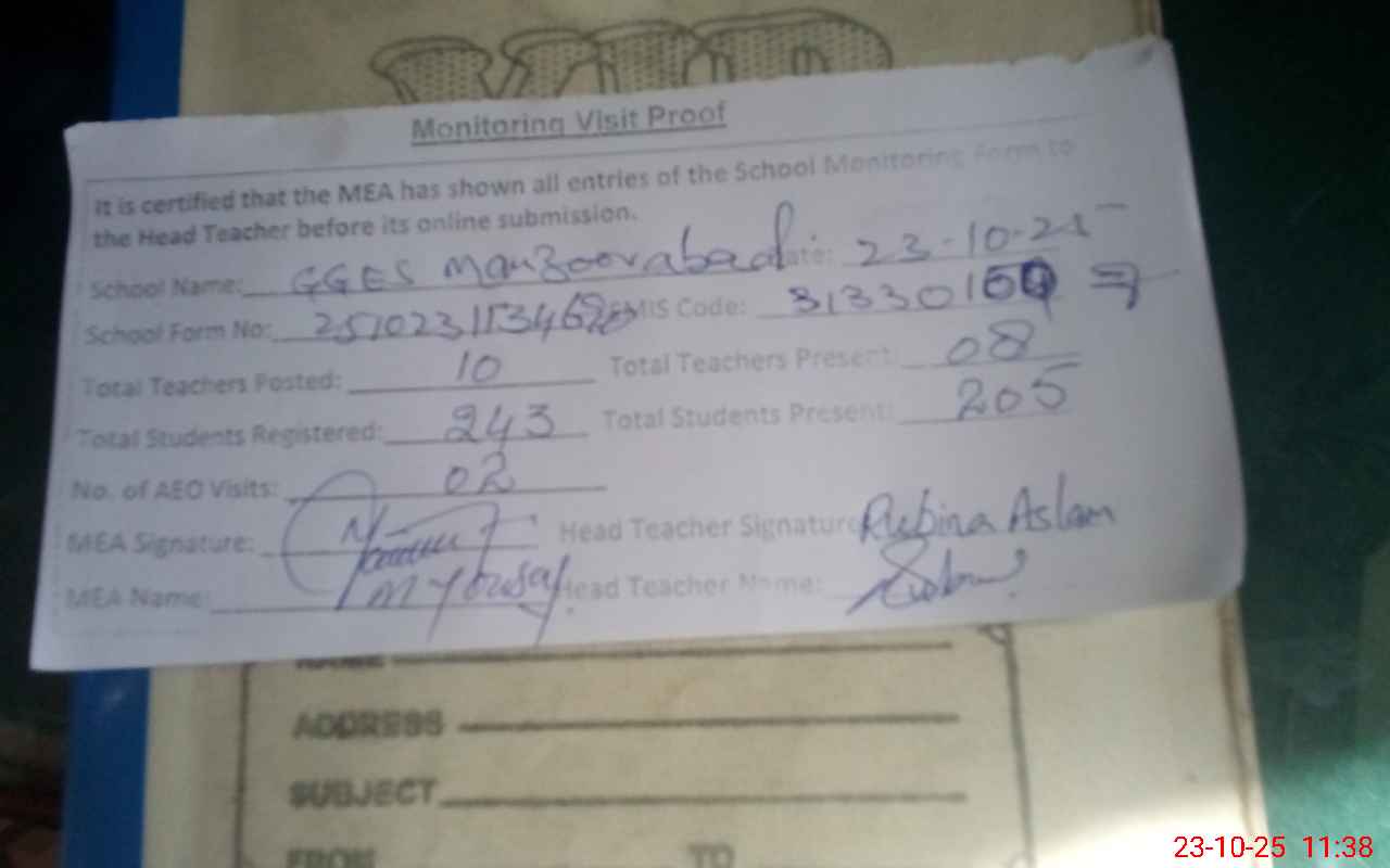 | EMIS Code: 31330150 | Name of School: GGES MANZOOR ABAD | |||
