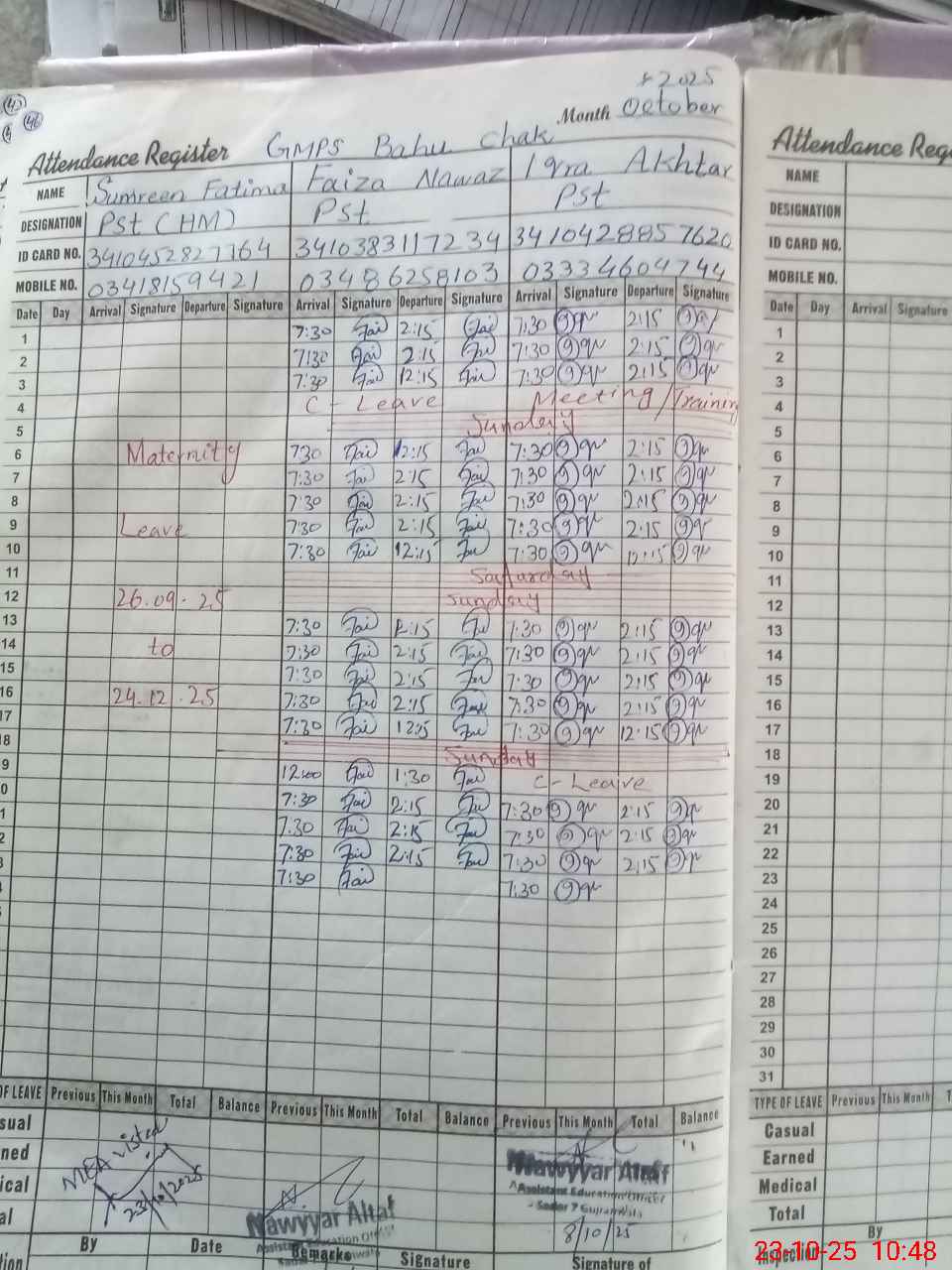 | 34**** | Su**** Fa**** | PST | Regular | 0 | 0 | 0 | 0 | 0 | 0 | 0 | 0 | 0 | Maternity |