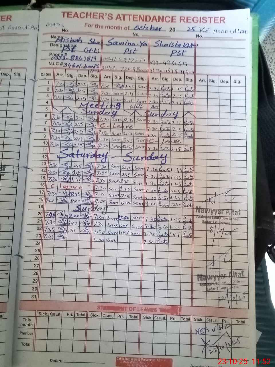 | EMIS Code: 34110382 | Name of School: GMPS KOT ASAD ULLAH | |||