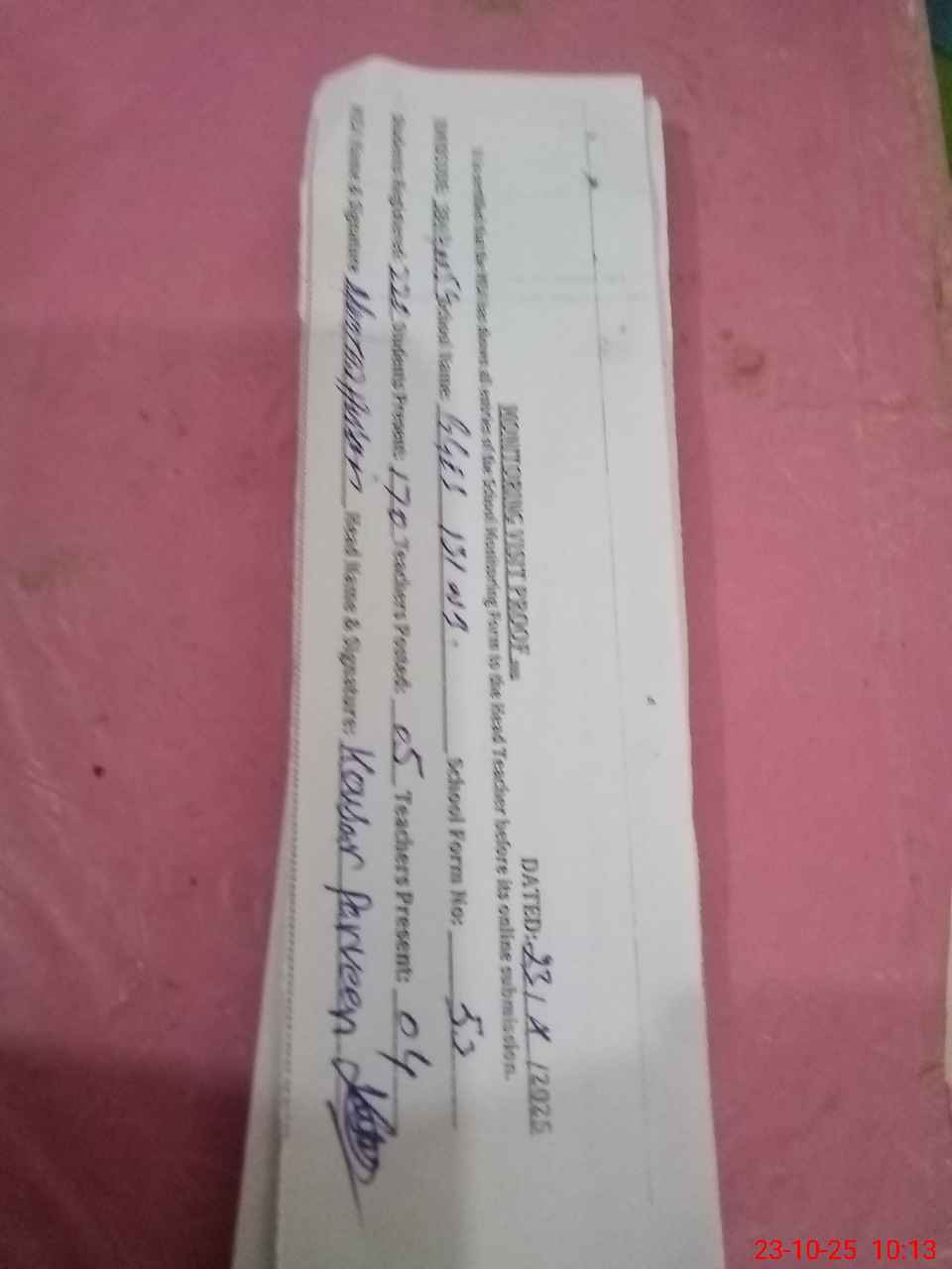 | Attendance Register | Head Teacher | MEA with School | Visit Proof |