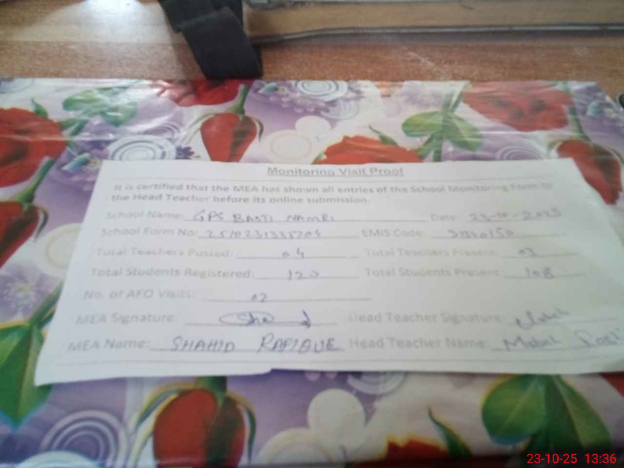 | EMIS Code: 31340150 | Name of School: GPS BASTI NAMRI | |||