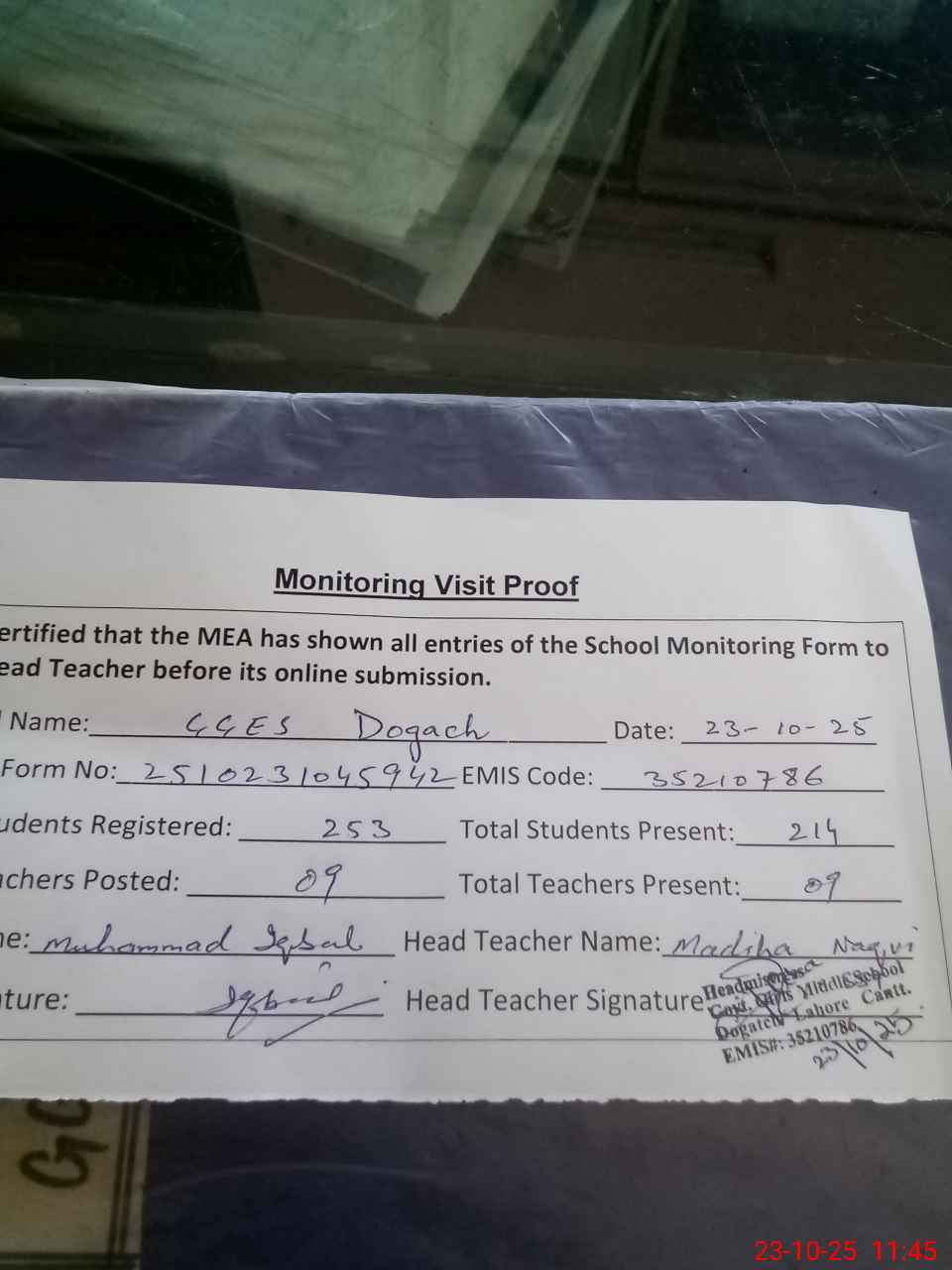 | Monitoring Date: 23-10-2025 | Start Time: 23-10-2025 10:45 AM | End Time: 23-10-2025 11:47 AM | Name of MEA: Mu**** Iq**** | |