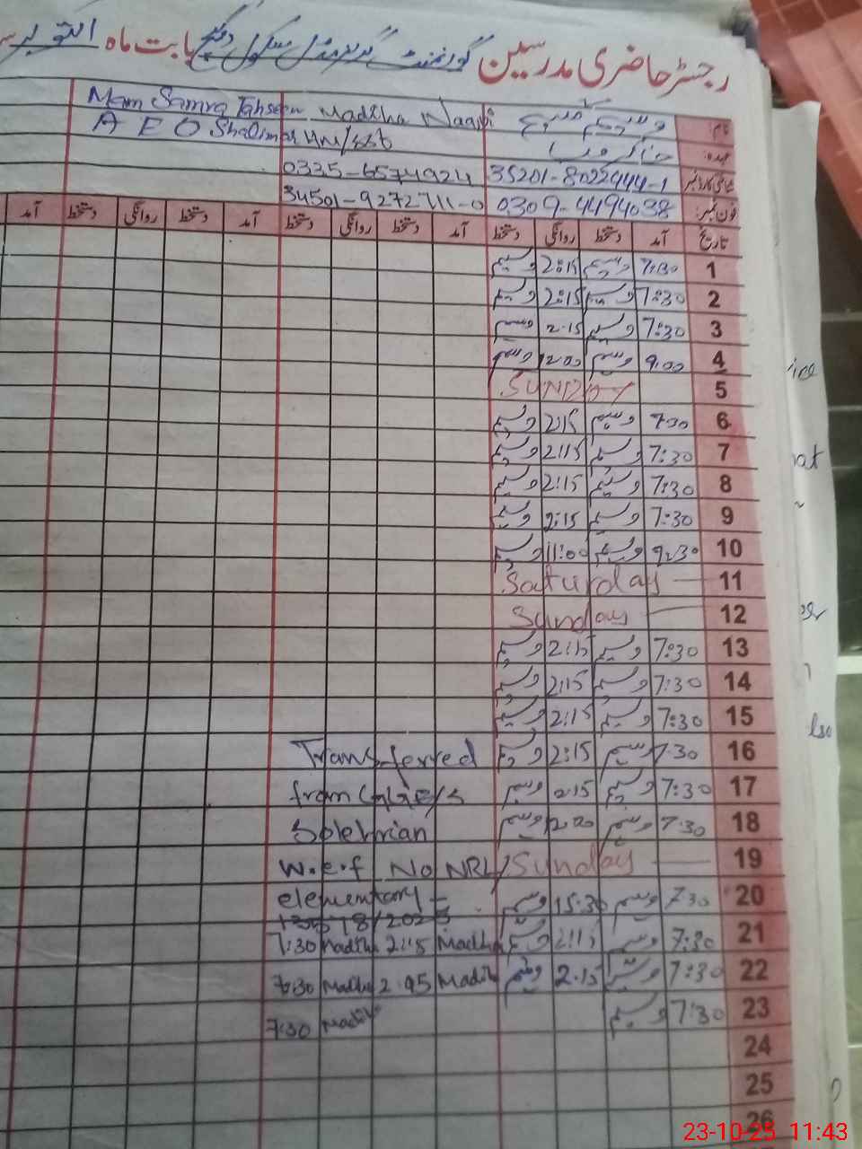 | Name: Ma**** Na**** Designation: (School Headmaster's/Headmistress's) SST Phone/Cell Number: 03**** |