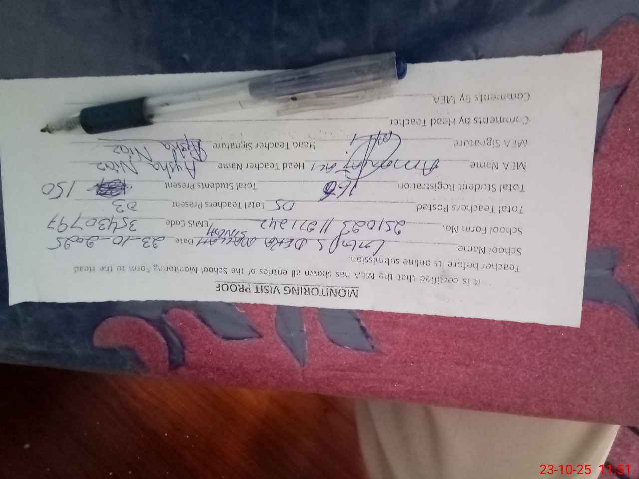 | Attendance Register | Head Teacher | MEA with School | Visit Proof |