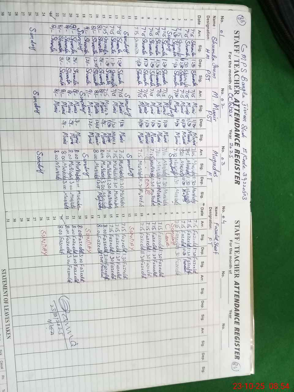 | Name: SH**** IR**** Designation: (School Headmaster's/Headmistress's) PST Phone/Cell Number: 03**** |