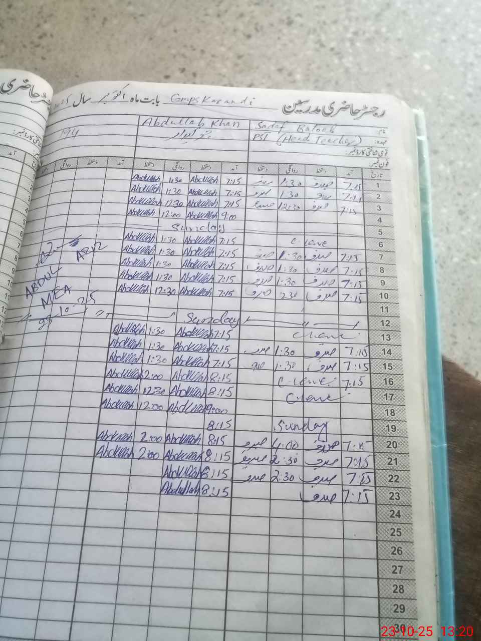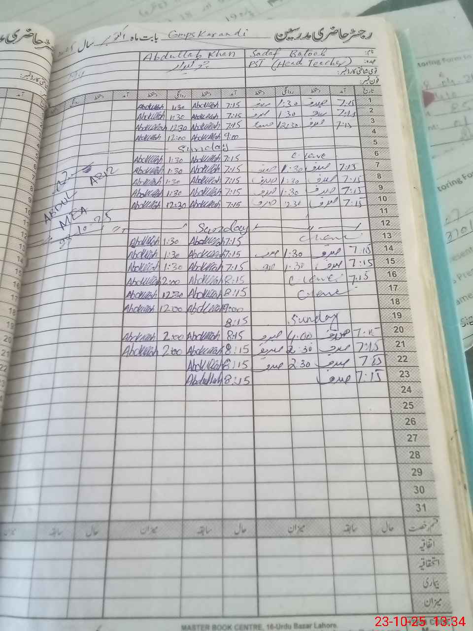 | CNIC | Full Name | Designation | R/C | Absence During Last Calender Month |