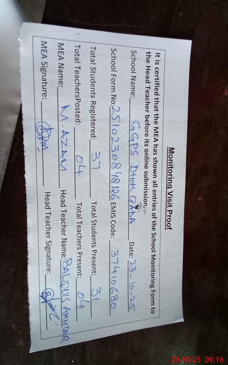 | EMIS Code: 37410680 | Name of School: GGPS DHOK QADA | |||
