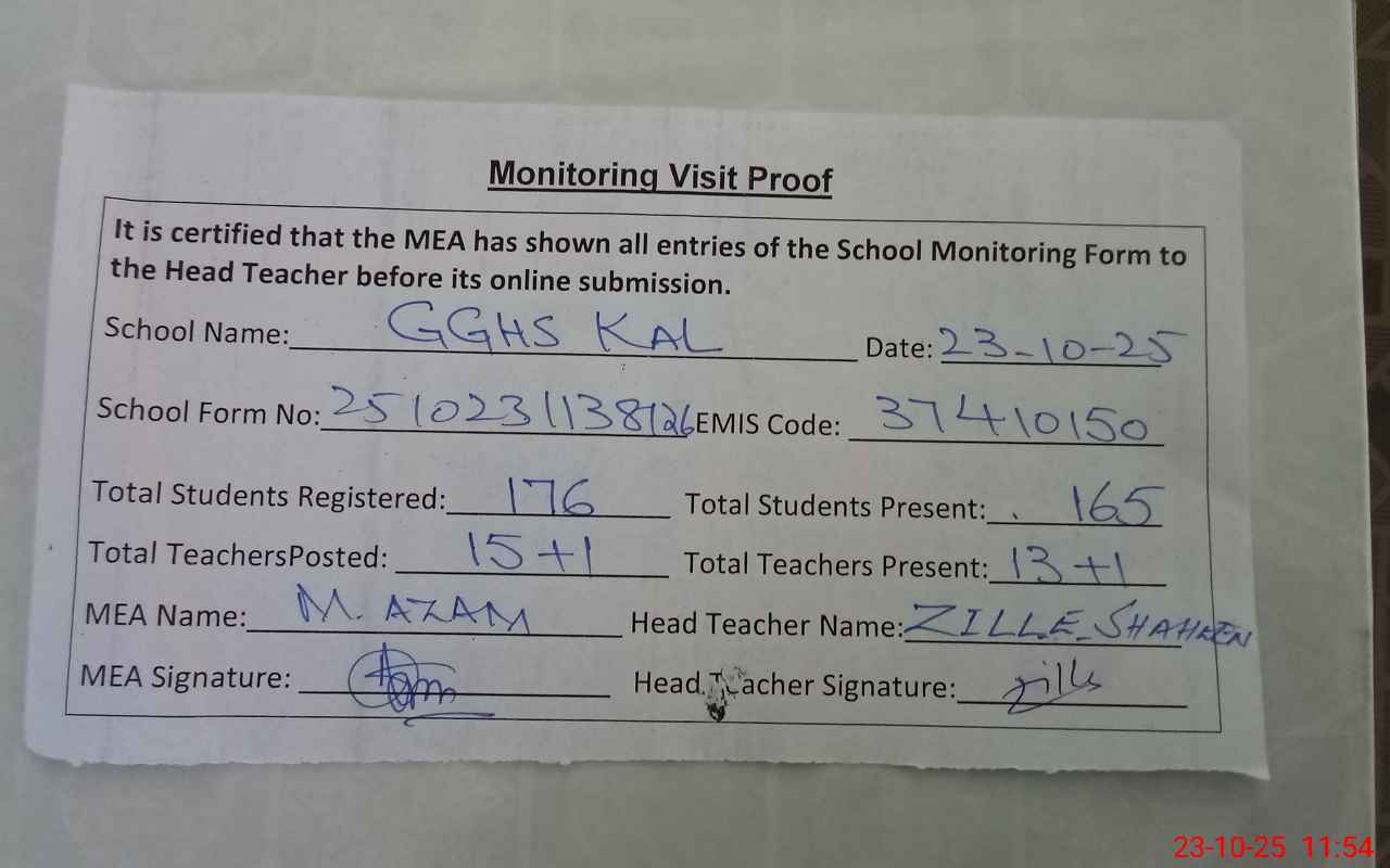 | EMIS Code: 37410150 | Name of School: GGHS KAL | |||