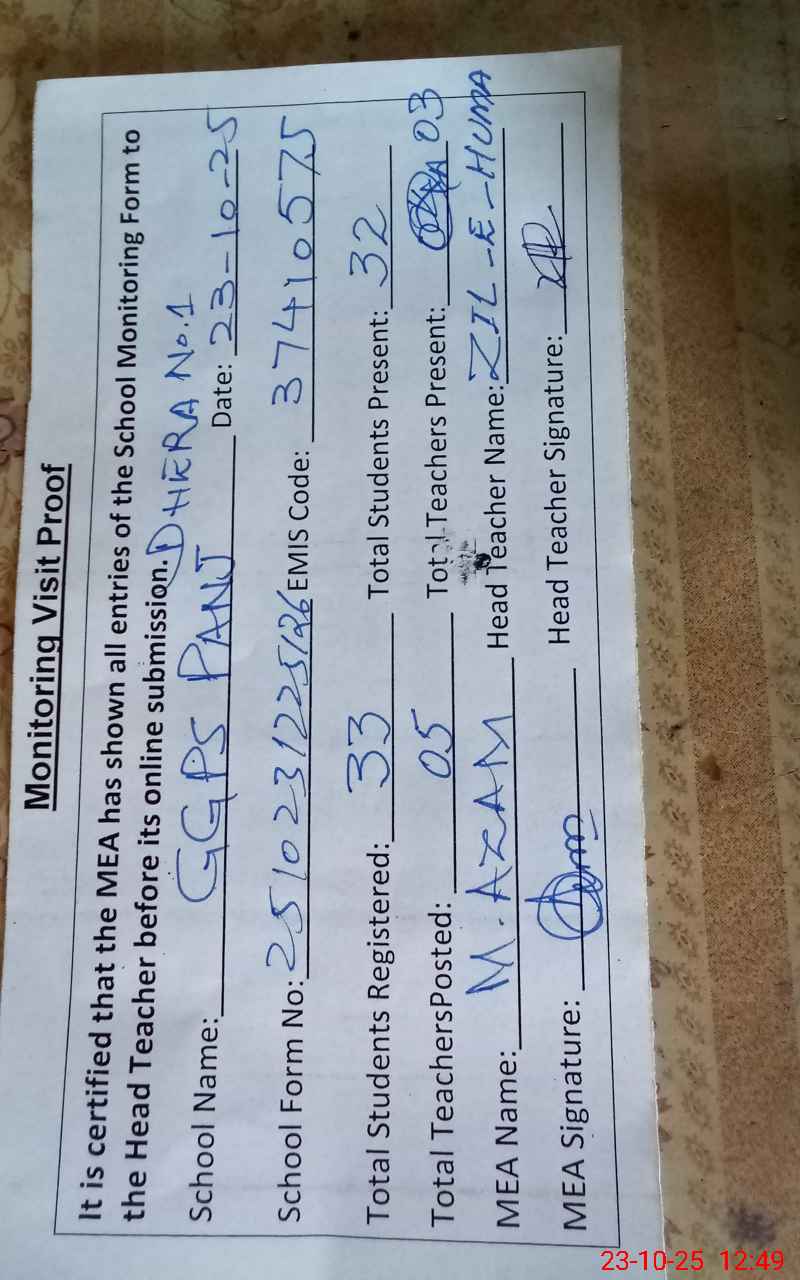 | EMIS Code: 37410575 | Name of School: GGPS PANJ DHERA NO.1 | |||