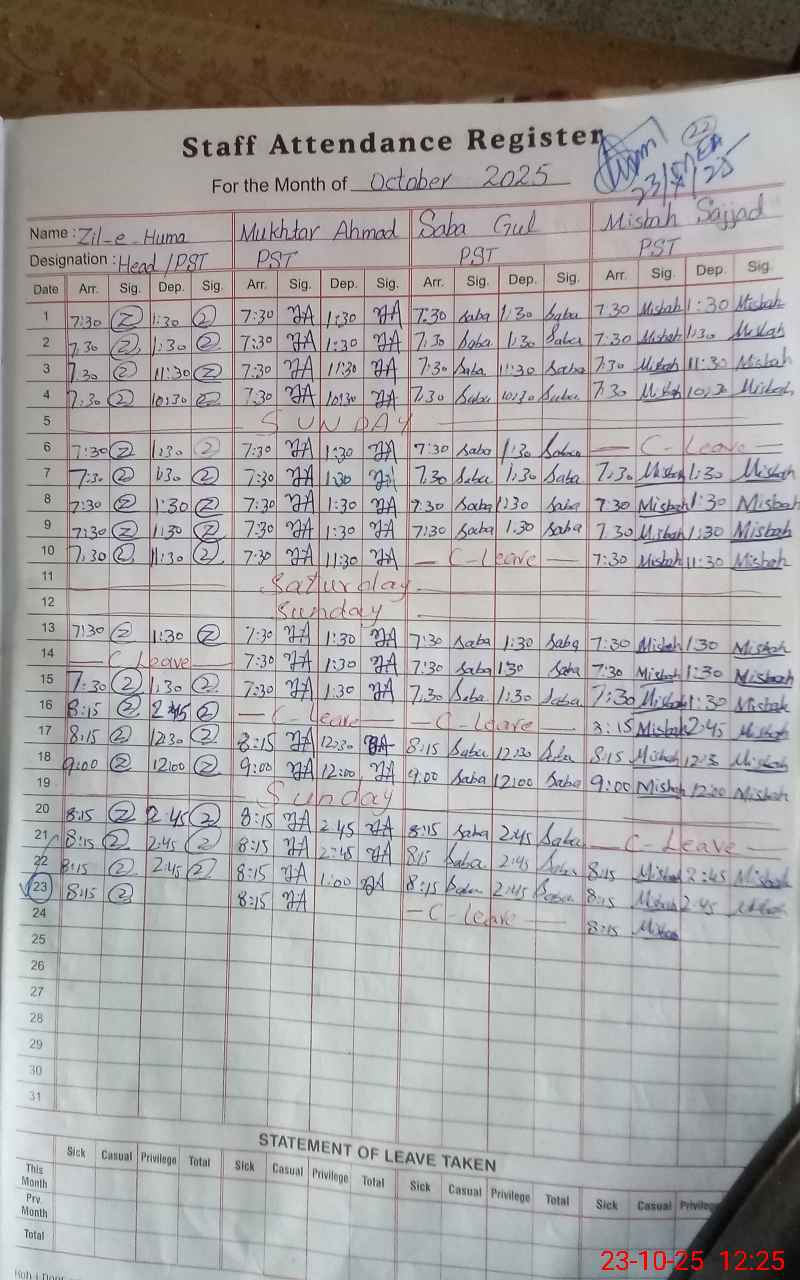 | 61**** | Mu**** Am**** Kh**** | PST | Temporary | 30 | 0 | 0 | 30 | 0 | 0 | 0 | 0 | 0 | Maternity |