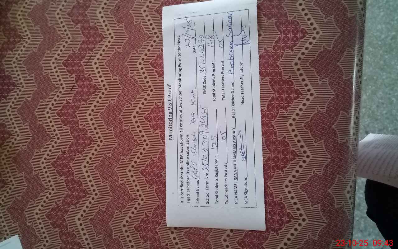 | EMIS Code: 35220290 | Name of School: GGPS SHEIKH DA KOT | |||