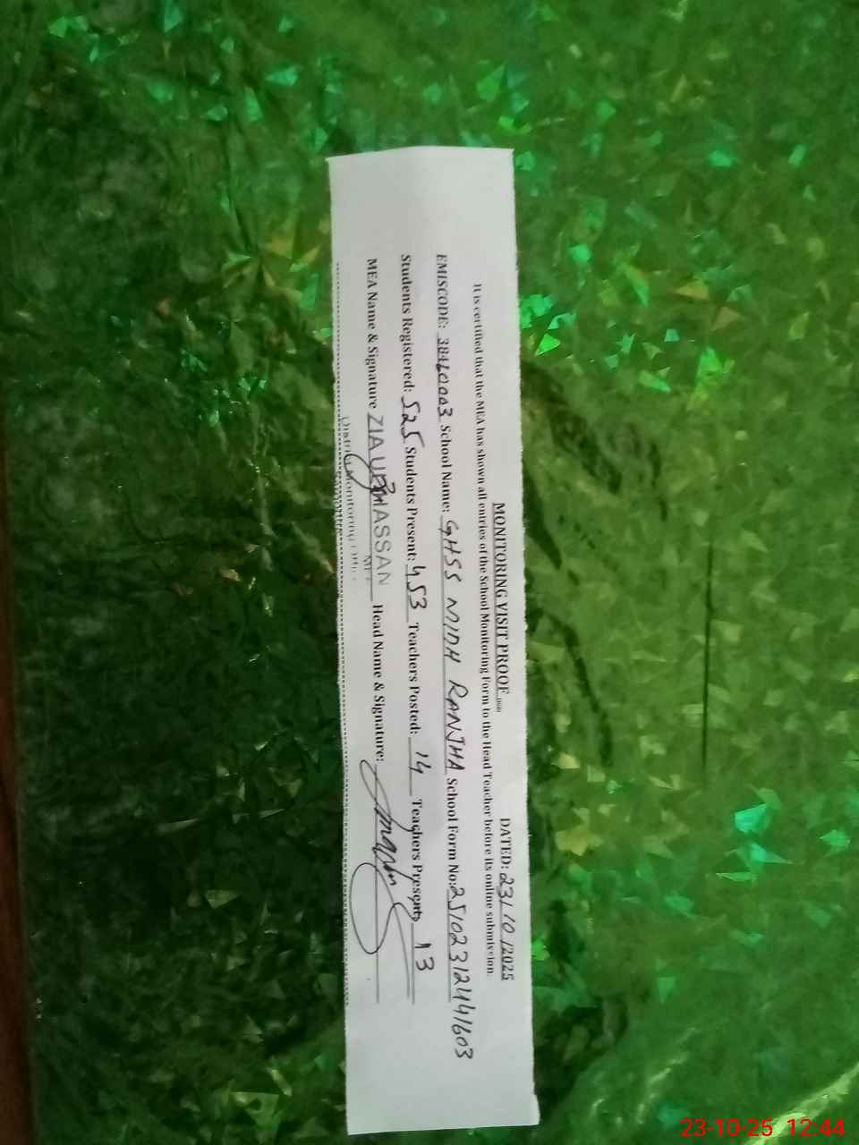 | Monitoring Date: 23-10-2025 | Start Time: 23-10-2025 12:23 PM | End Time: 23-10-2025 12:45 PM | Name of MEA: ZI**** ULHA**** | |