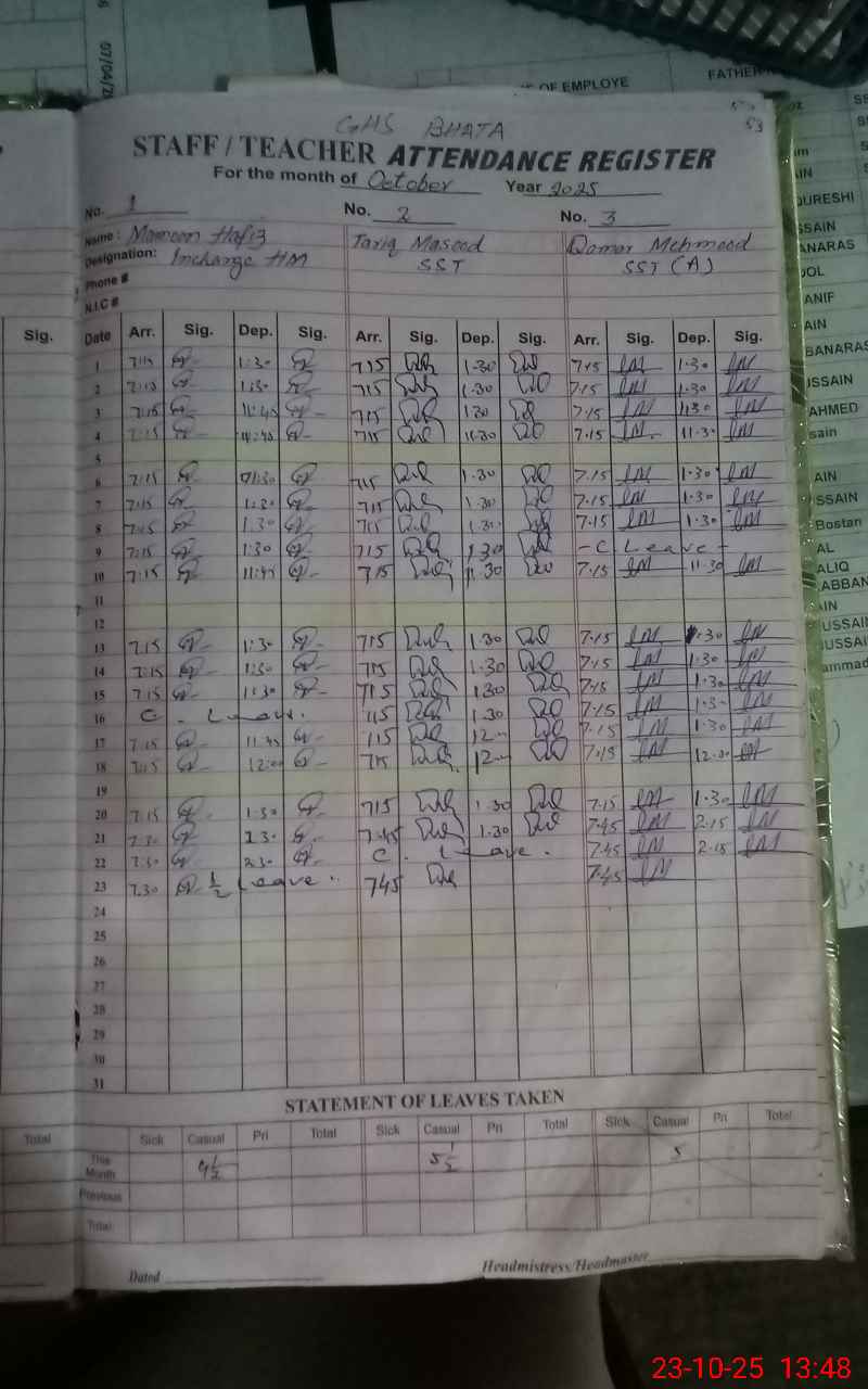 | Name: AQ**** IS**** Designation: (School Headmaster's/Headmistress's) Hm Phone/Cell Number: 03**** |