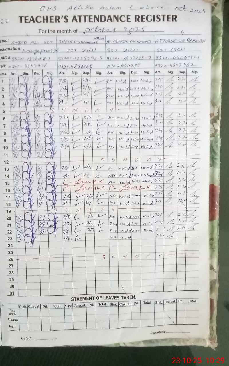 | EMIS Code: 35210042 | Name of School: GHS ATTO KAY AWAN | |||