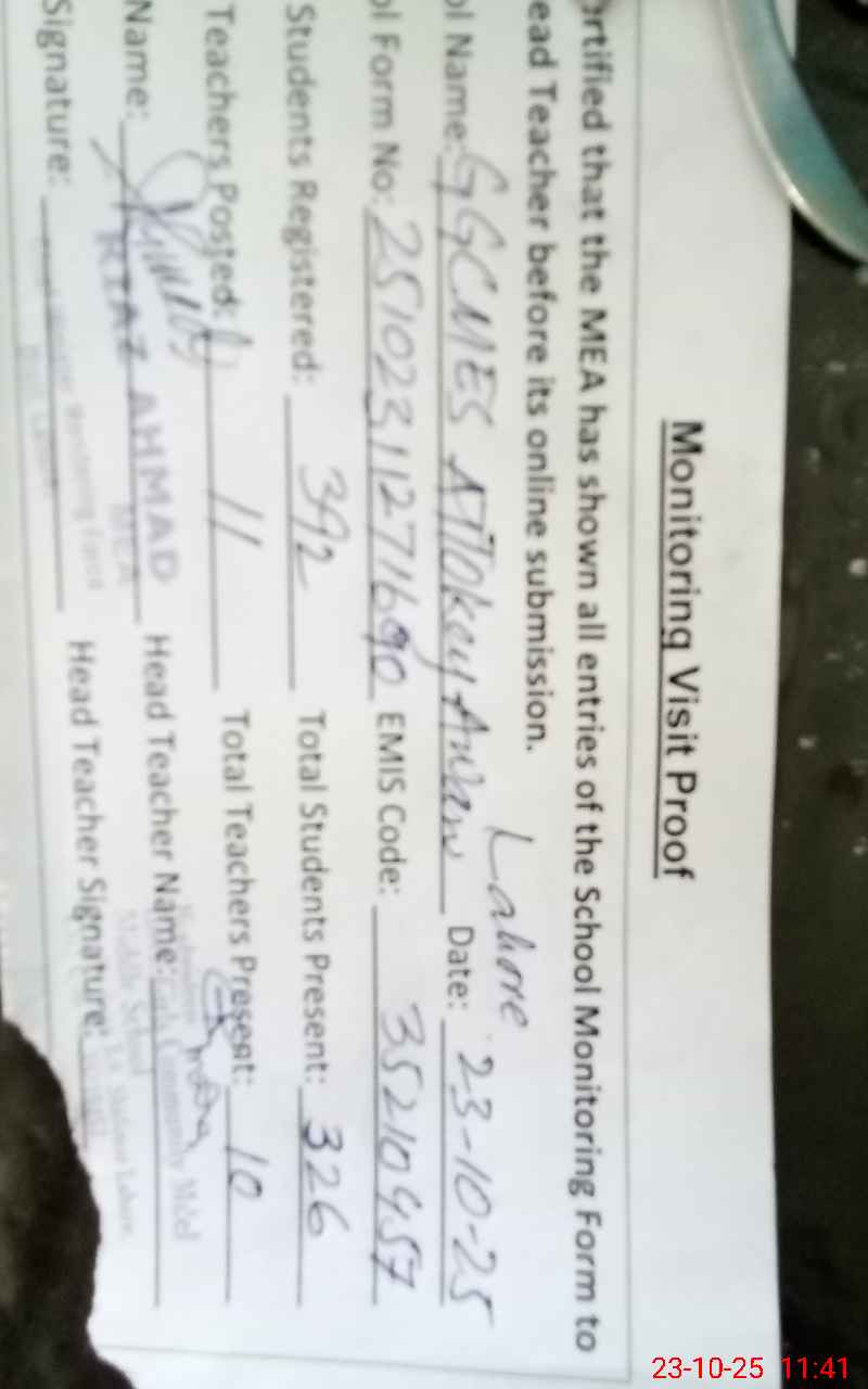 | EMIS Code: 35210457 | Name of School: GGCMES ATTO KAY AWAN BATA PUR | |||