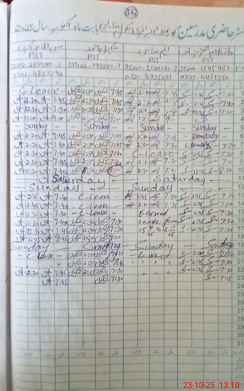| Name: Ha**** Ab**** Az**** Sa**** Designation: (School Headmaster's/Headmistress's) PST Phone/Cell Number: 03**** |