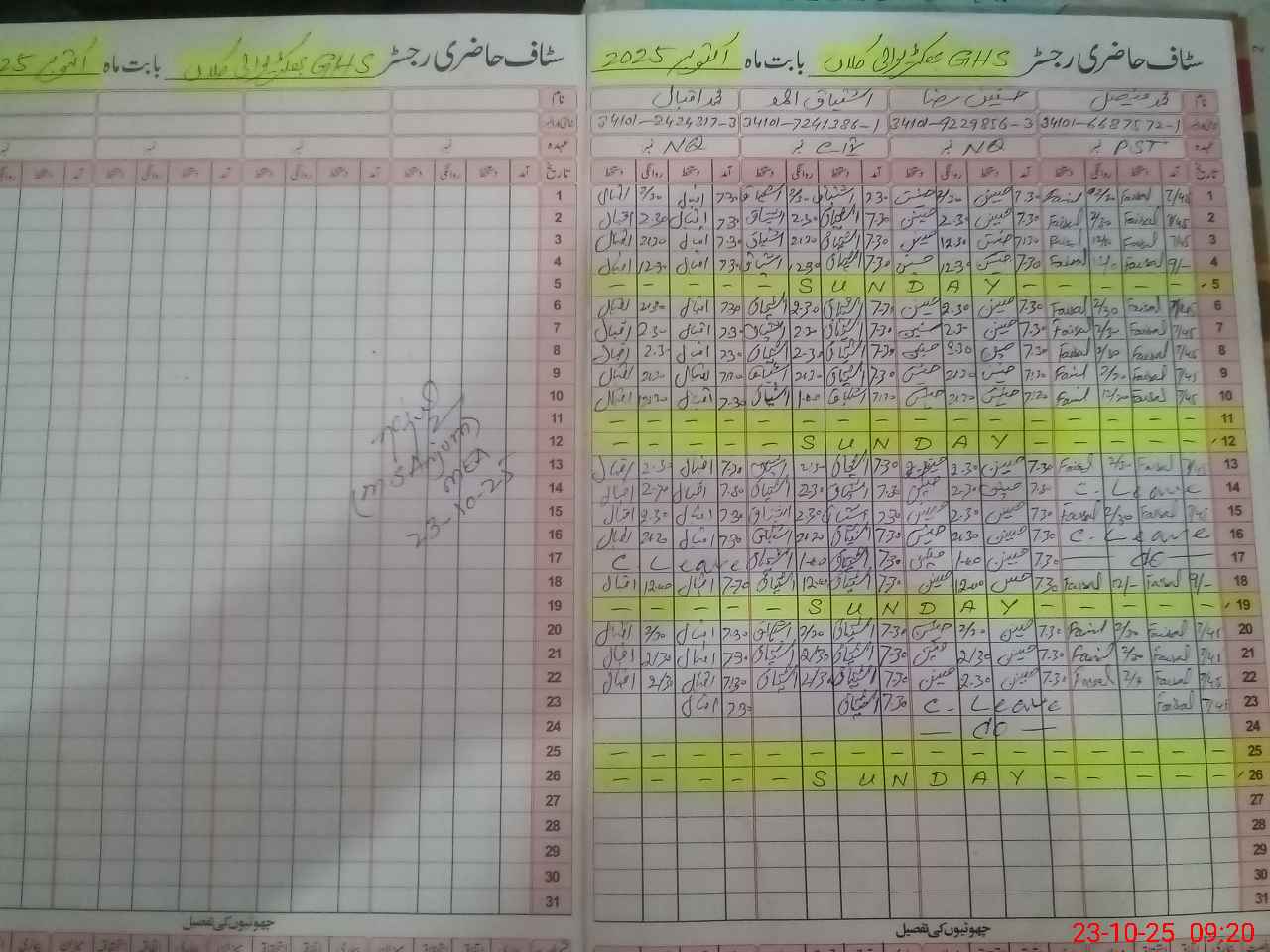 | 34**** | HU**** RA**** | NAIB QASID | Regular | 2 | 0 | 0 | 0 | 0 | 0 | 0 | 0 | 2 | Casual |