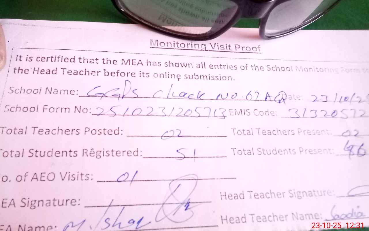 | Attendance Register | Head Teacher | MEA with School | Visit Proof |