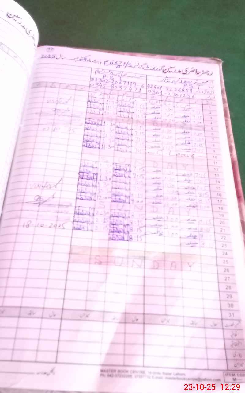 | CNIC | Full Name | Designation | R/C | Absence During Last Calender Month |