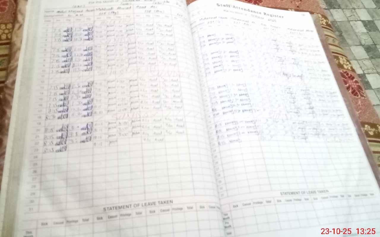 | CNIC | Full Name | Designation | R/C | Absence During Last Calender Month |