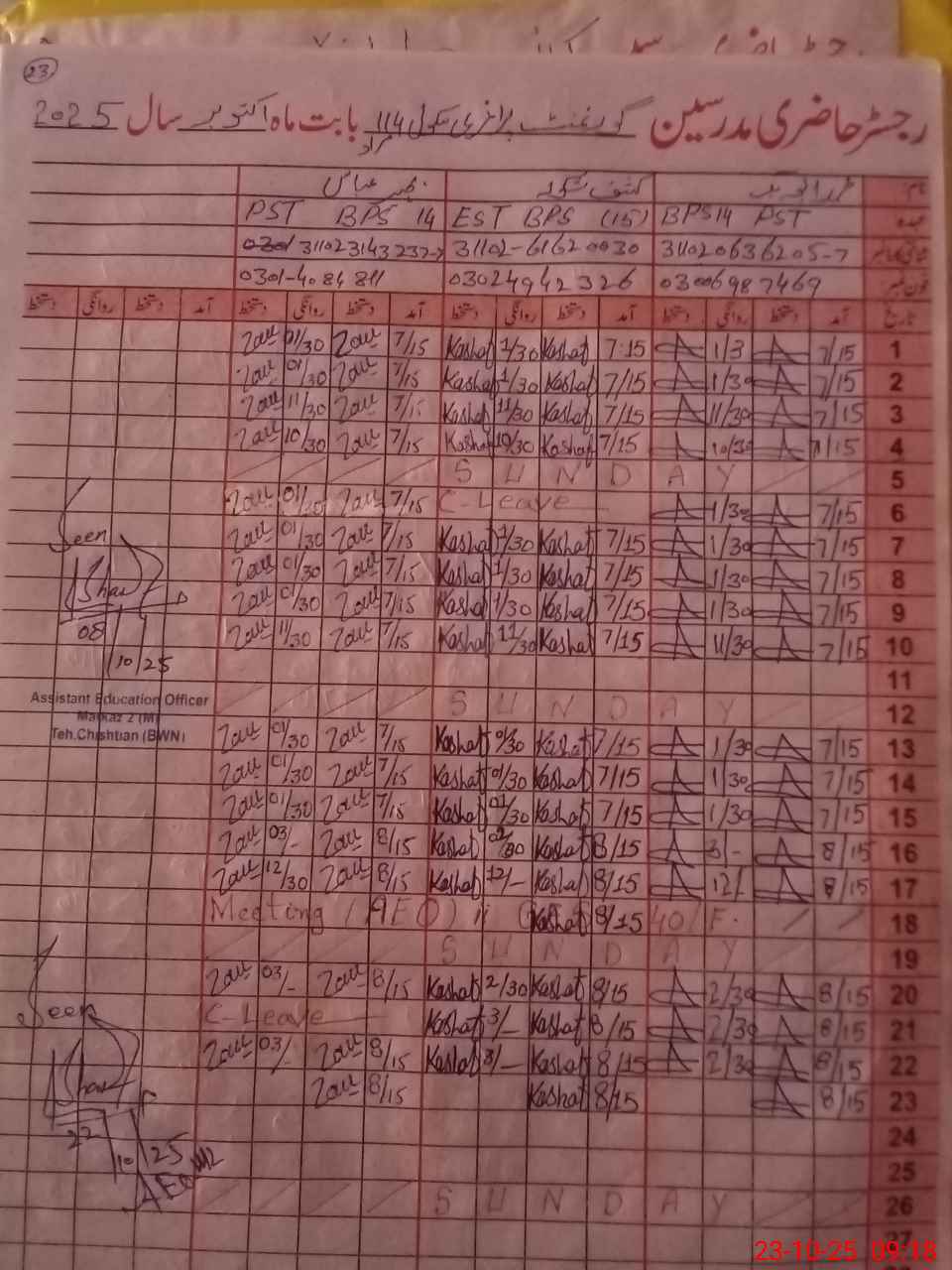 | Name: Mu**** Ab**** Designation: (School Headmaster's/Headmistress's) PST Phone/Cell Number: 03**** |
