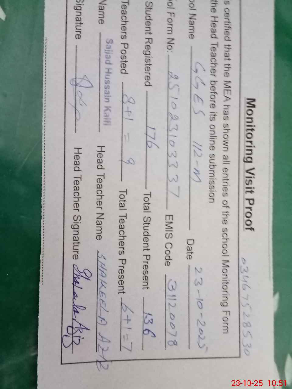 | EMIS Code: 31120078 | Name of School: GGES CHAK NO. 112/M | |||