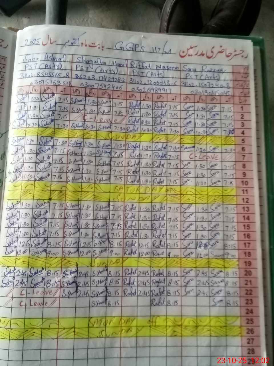 | CNIC | Full Name | Designation | R/C | Absence During Last Calender Month |