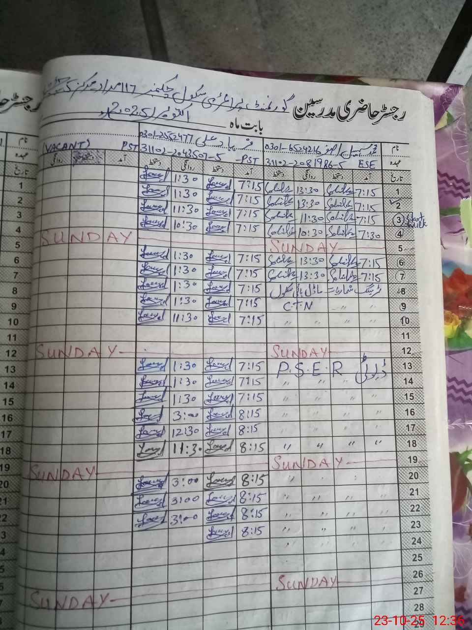| CNIC | Full Name | Designation | R/C | Absence During Last Calender Month |