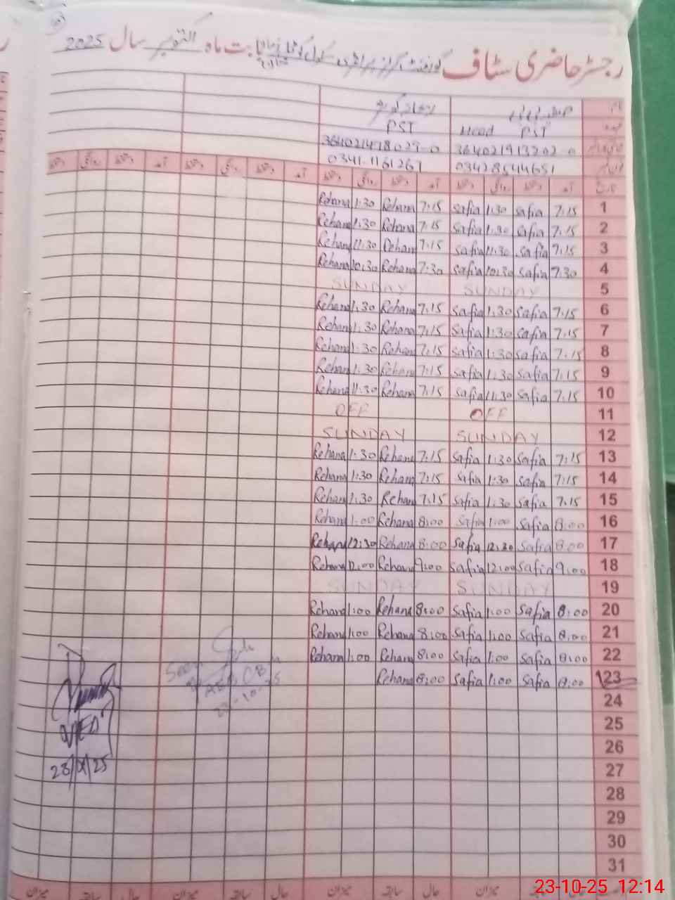 | Name: Sa**** Bi**** Designation: (School Headmaster's/Headmistress's) PST Phone/Cell Number: 03**** |