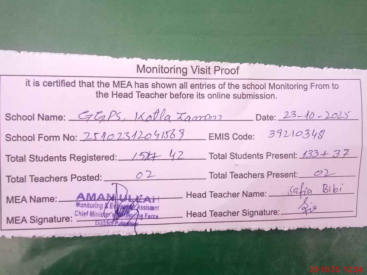 | EMIS Code: 39210348 | Name of School: GGPS KOTLA ZAMAN KHAN | |||